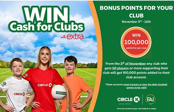 Exciting news! Circle K x FAI Cash for Clubs is offering a special bonus points opportunity.