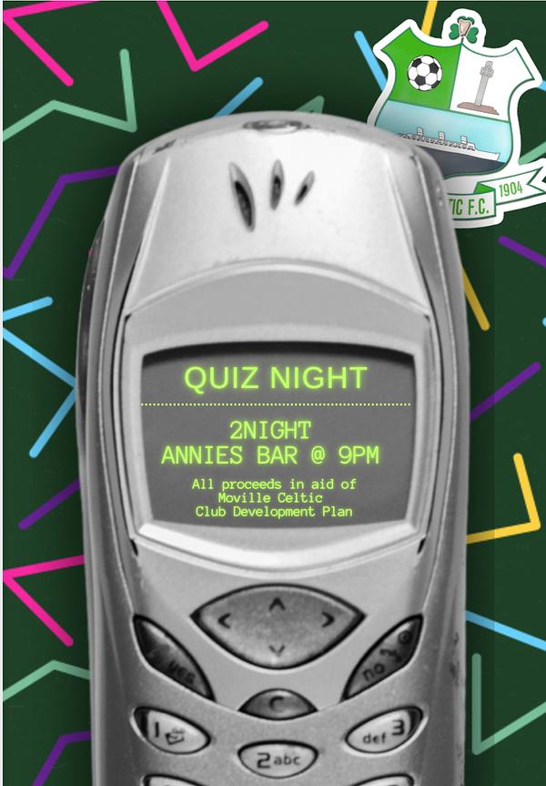 Get your phones out, make the plans, line up the babysitters and round up your crew!! it’s time for the Moville Celtic Quiz Night at Annie's Bar moville starting at 9PM, €5PP! 💚⚽