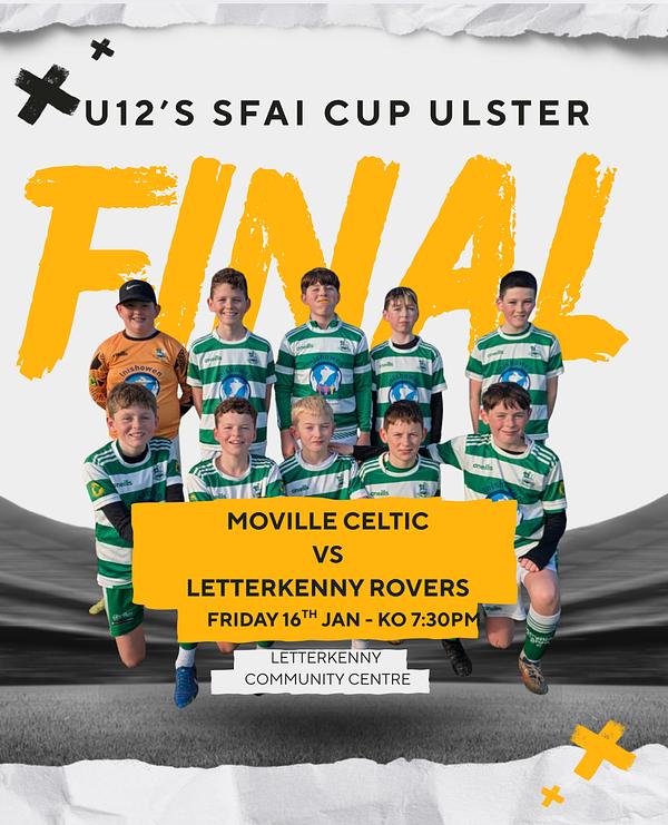 THIS FRIDAY is FINAL day for our U12s as they take on Letterkenny Rovers in the SFAI Cup Ulster Final π