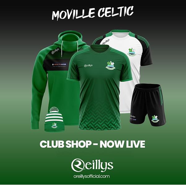 This is your chance to get fully geared up in the green and white ahead of the season 💚⚽ From hoodies and half zips to training tops and rain jackets — everything you need to represent Moville Celtic with pride.
